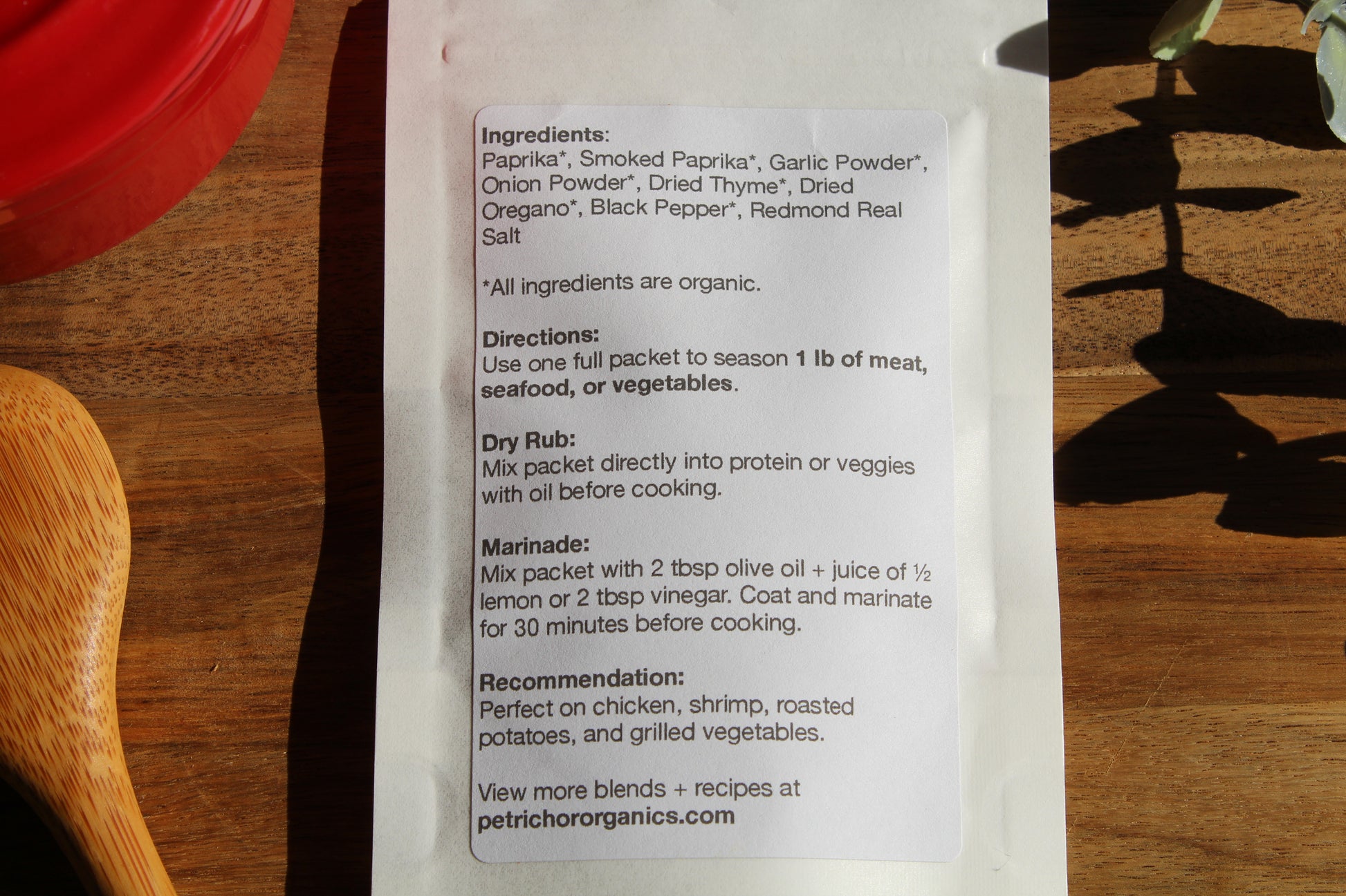 Made with organic ingredients. One packet seasons 1 pound of food.