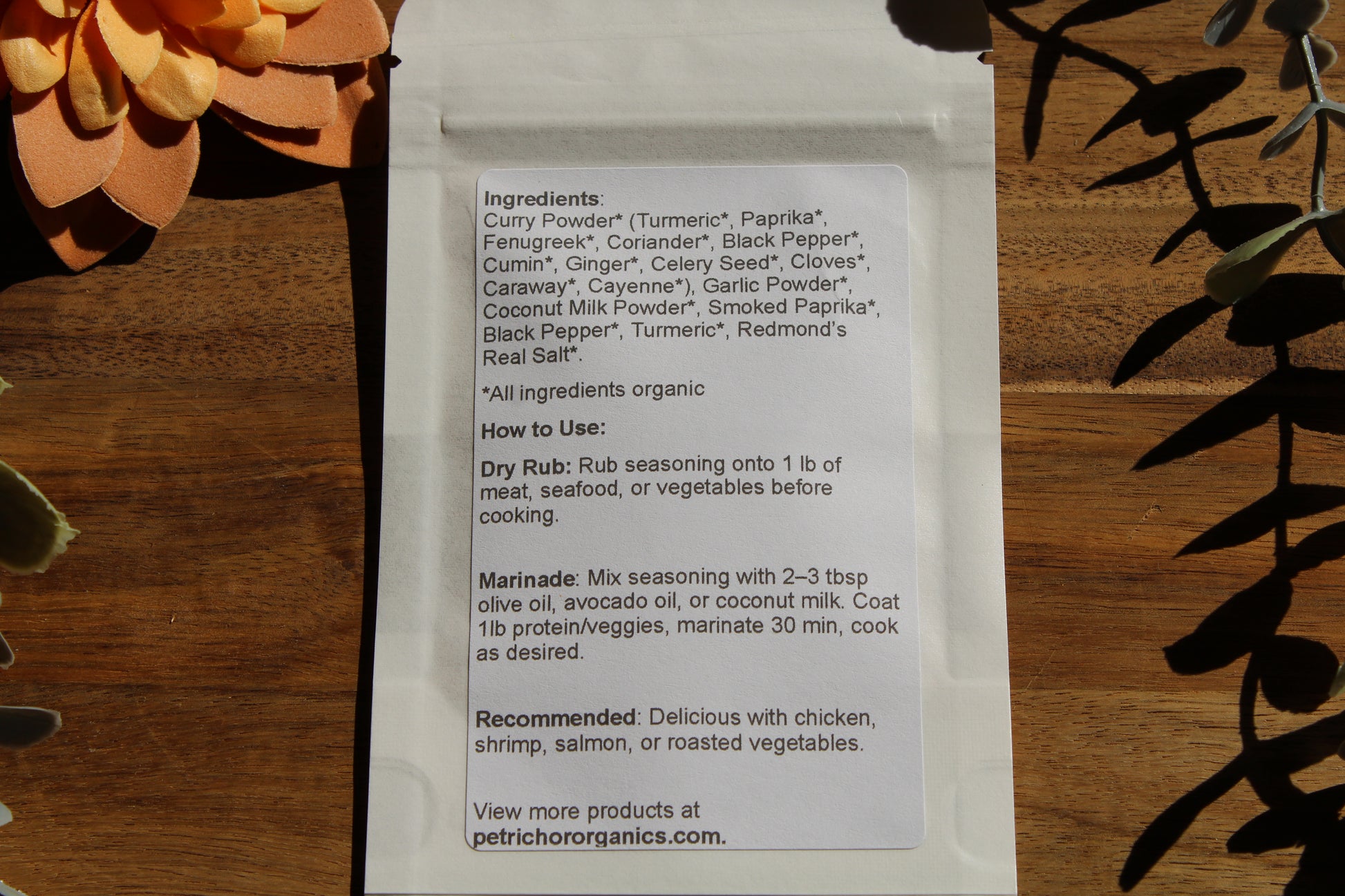 Made with all organic ingredients. One packet seasons 1 pound of food.
